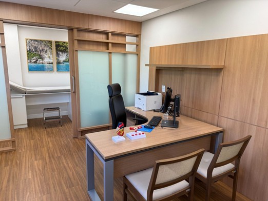 O consultório foi planejado para oferecer um ambiente acolhedor e confortável, onde cada paciente possa se sentir bem recebido. O espaço conta com estrutura adequada para consultas completas, incluindo sala reservada para exame físico.